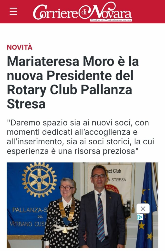 A.R. 2025/2026, Rassegna Stampa Corriere di Novara, giugno 2025 Passaggio di consegne, Mariateresa Moro alla guida del nostro Club per il 2025/2026: un anno all’insegna del territorio e dell’inclusione “Concrete Astrazioni”: un viaggio umano e nell’arte a Domodossola